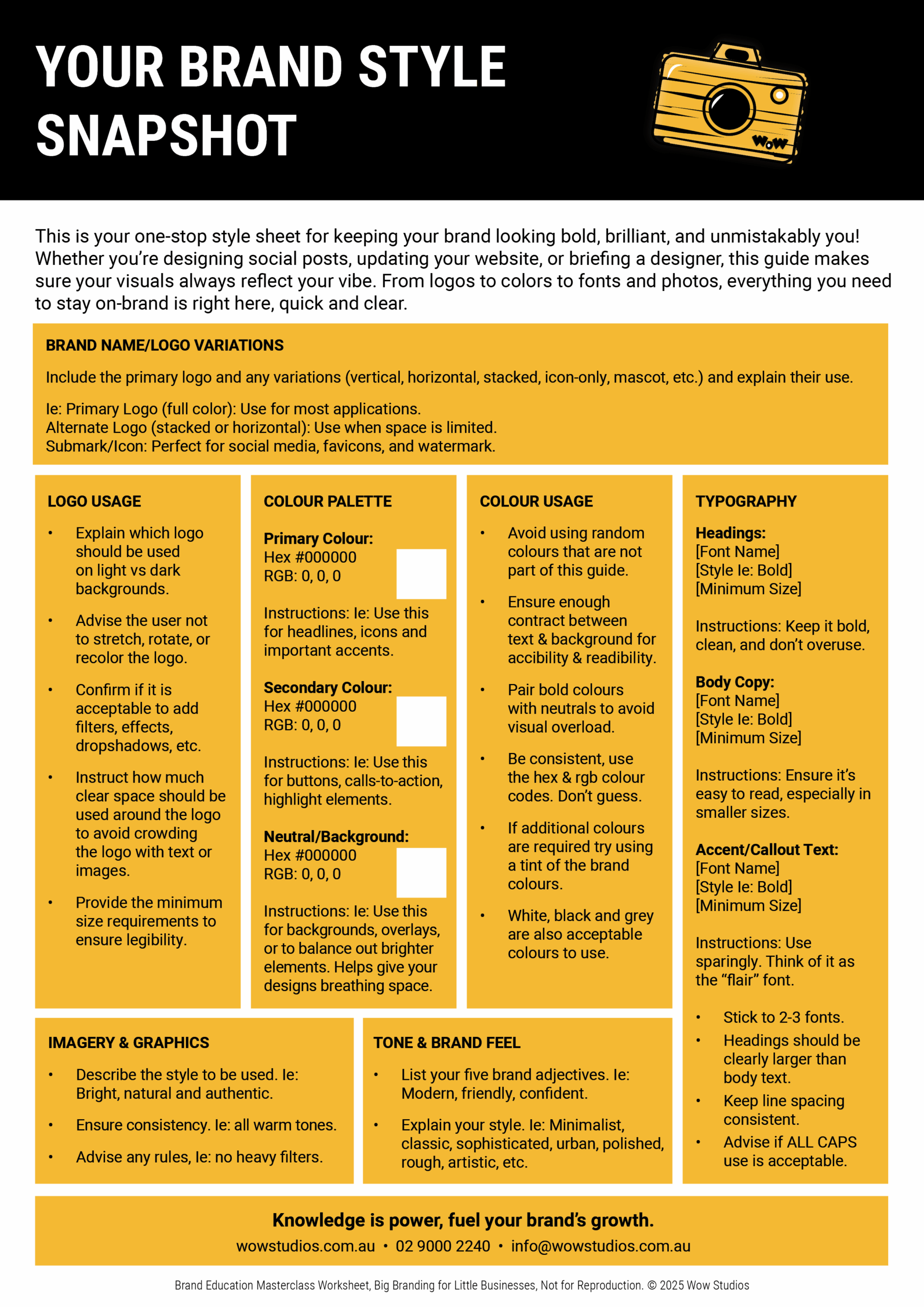 This is your one-stop style sheet for keeping your brand looking bold, brilliant, and unmistakably you! Whether you’re designing social posts, updating your website, or briefing a designer, this guide makes sure your visuals always reflect your vibe. From logos to colours to fonts and photos, everything you need to stay on-brand is right here, quick and clear.